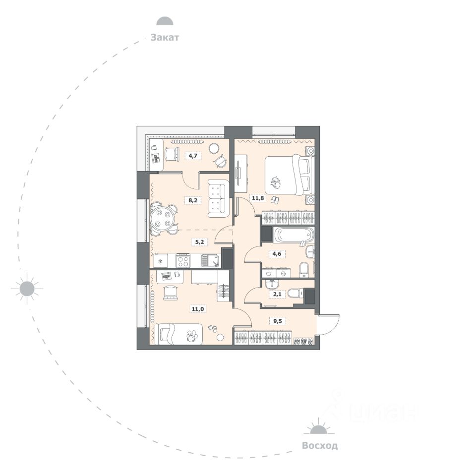 57 м² · Этаж 8 из 15