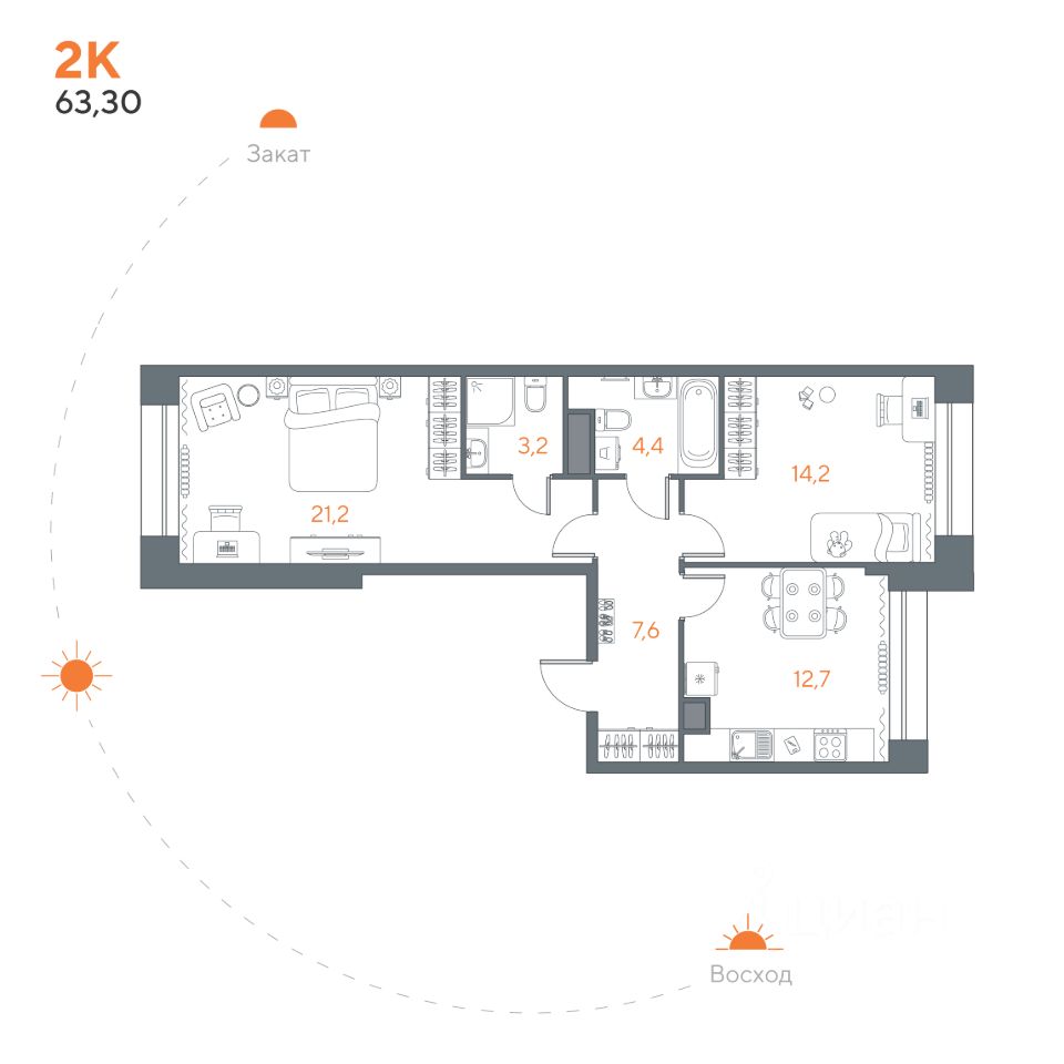 63 м² · Этаж 2 из 8