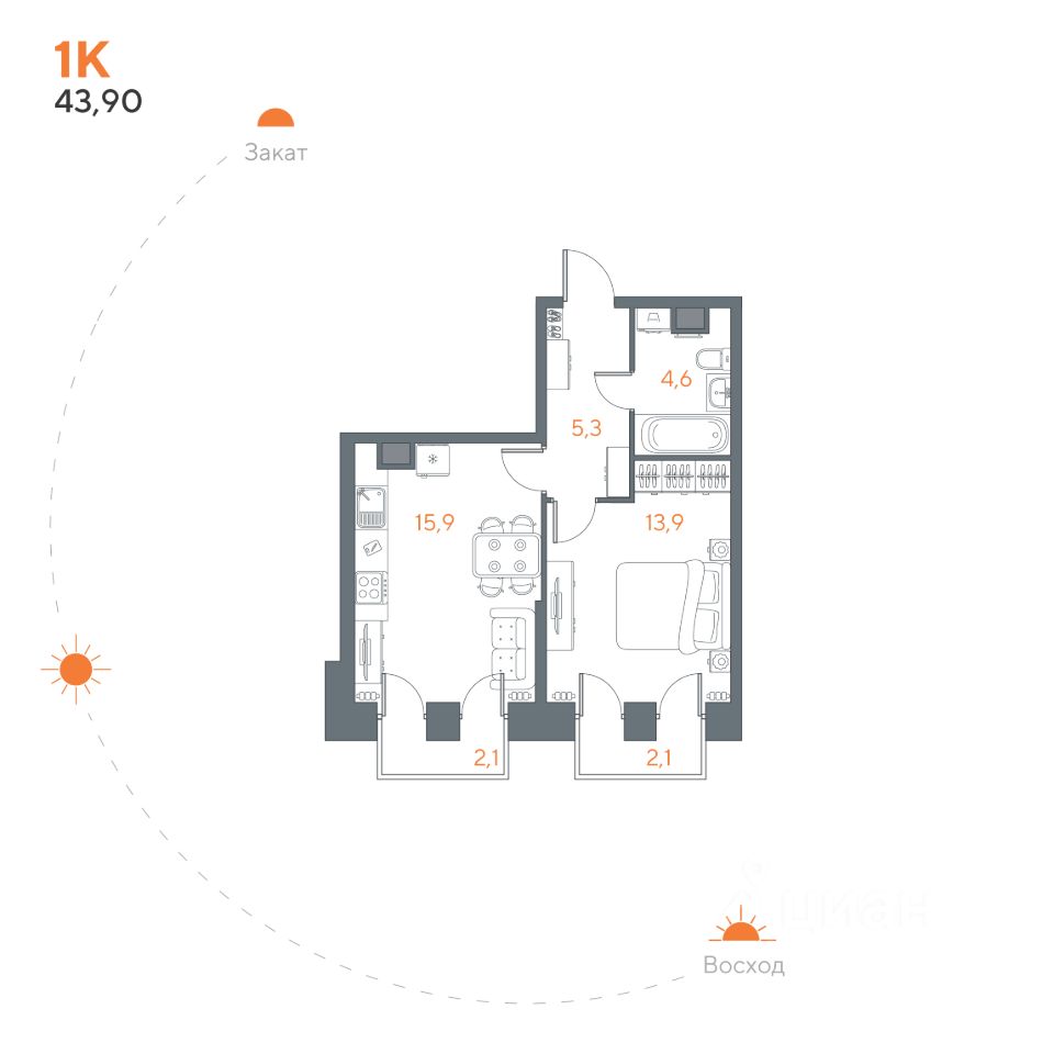 43 м² · Этаж 6 из 8