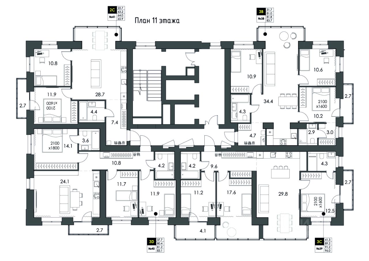 65 м² · Этаж 11 из 16