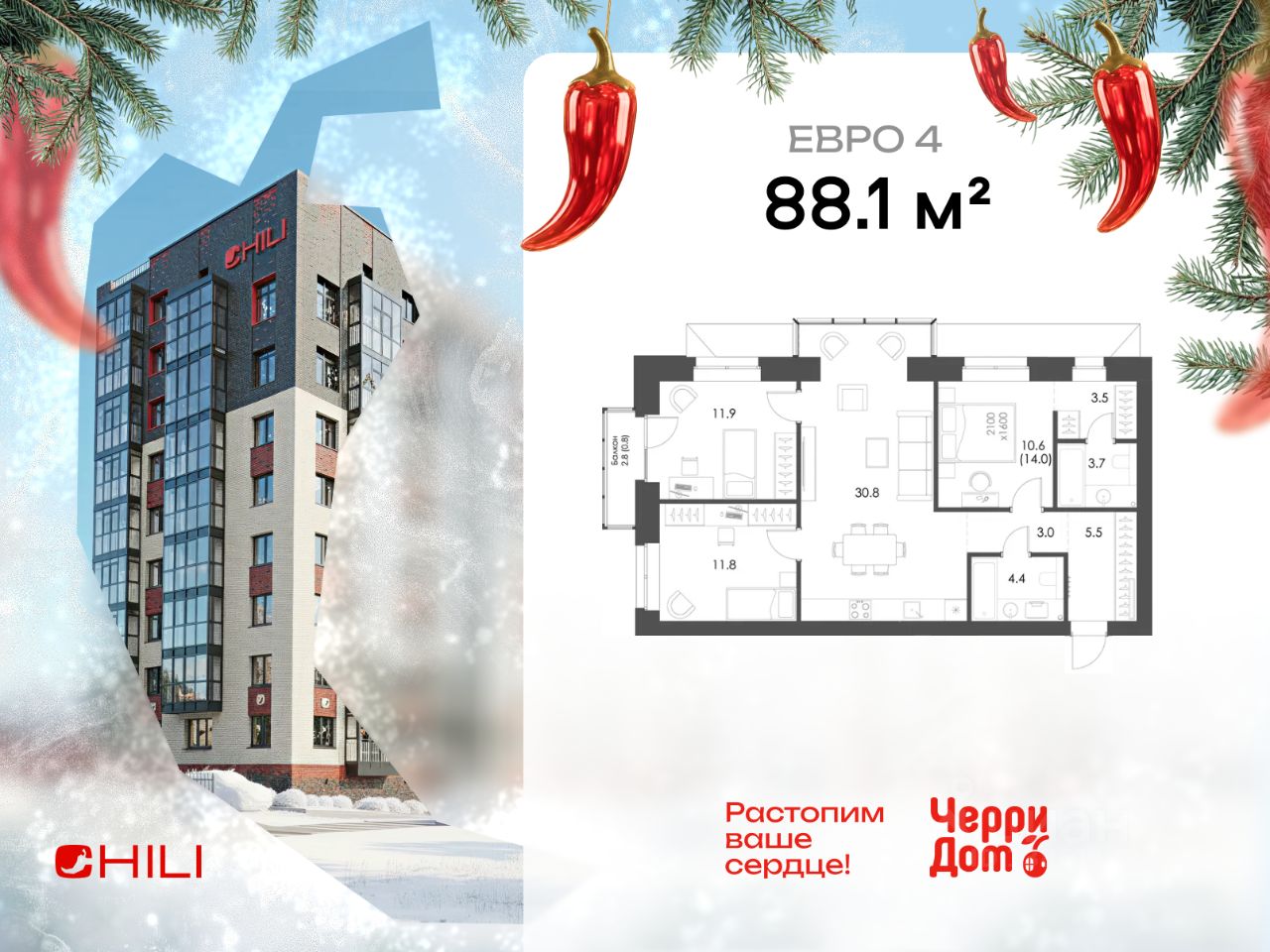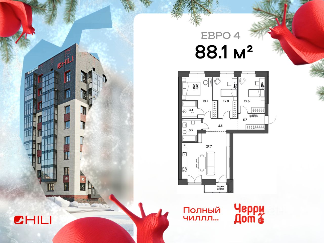 Продаётся 3-комнатная квартира 58 в жилом комплексе Чили от застройщика ЧерриДом.Квартира на 3 этаже, общей площадью 88.1 м². Высота потолков — 2,7 м. Предчистовая отделка.Чили — дом со вкусом жизни. Архитектура вдохновлена образом перца и идеей жить спокойно, осознанно. Фасады из клинкерного кирпича с объёмной кладкой, подъезды оформлены дизайнерски — с навигацией, зеркалами и арт-объектами.Двор закрыт от машин. Здесь зелёные зоны, качели, гамаки, детская площадка в виде лабиринта. Озеленение многосезонное: клубника, хвойные и цветущие кустарники.В доме — подземный паркинг, индивидуальные вентканалы, тёплые полы, видеонаблюдение, IP-домофония. Подъезды без ступеней, с лифтом и местами для хранения.Дом расположен на ул. Псковской, в зелёном и спокойном районе. В шаговой доступности — магазины, школы, остановки. Рядом — будущий городской парк.Чили — это больше, чем квартира. Это дом, в котором хочется ярко жить.