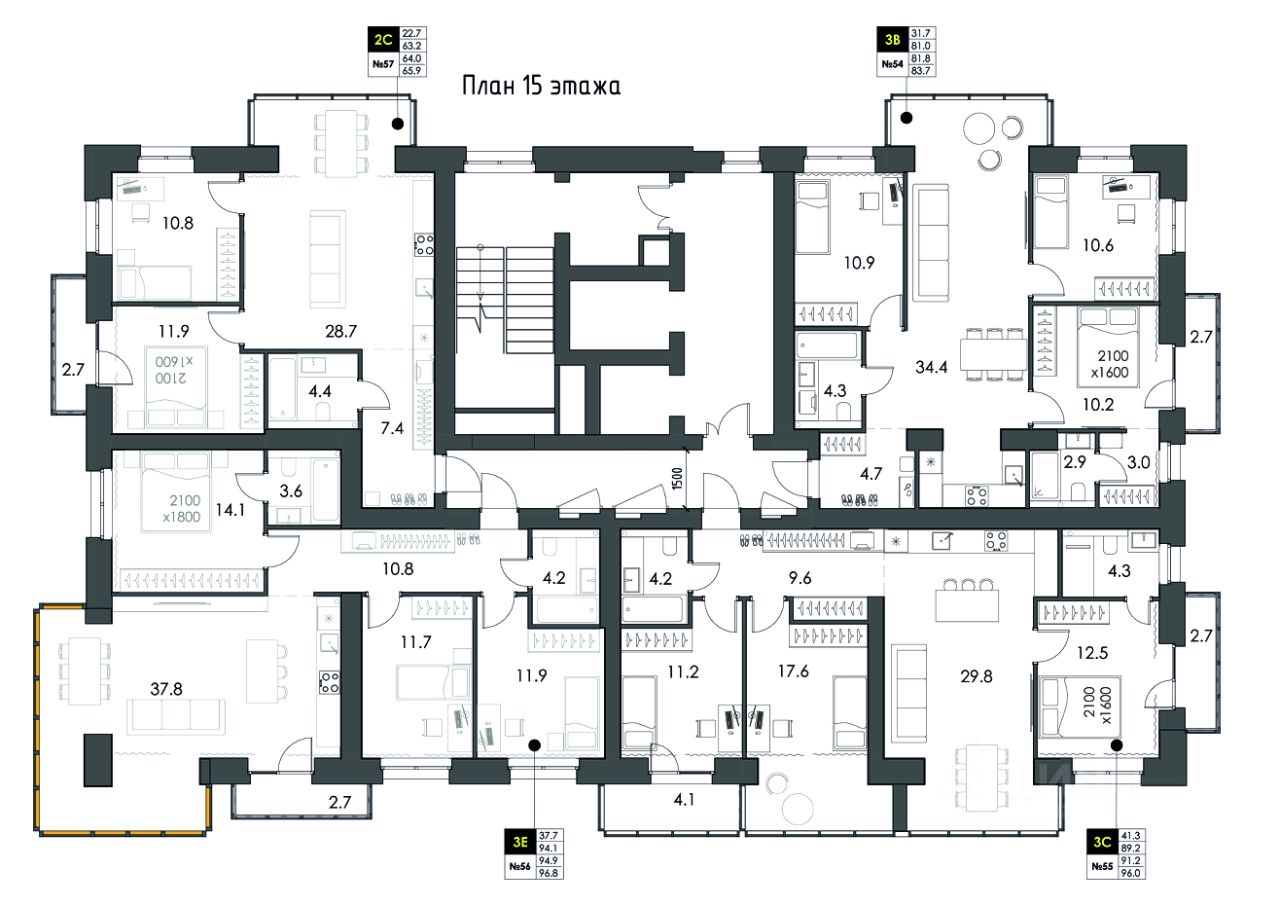 65 м² · Этаж 15 из 16