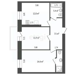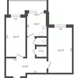 44 м2