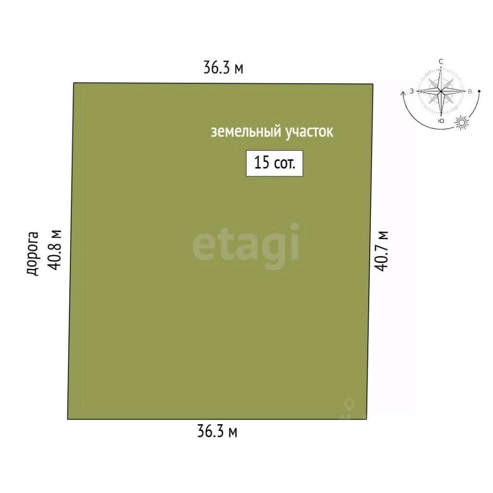 Участок площадью 15 соток имеет правильную форму и идеально подходит для строительства вашего загородного дома или дачи. Он сухой и готов к застройке.