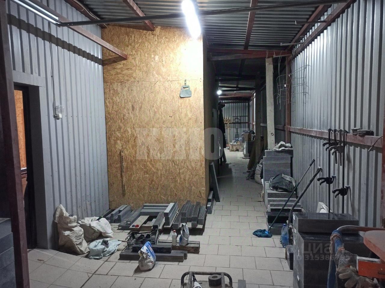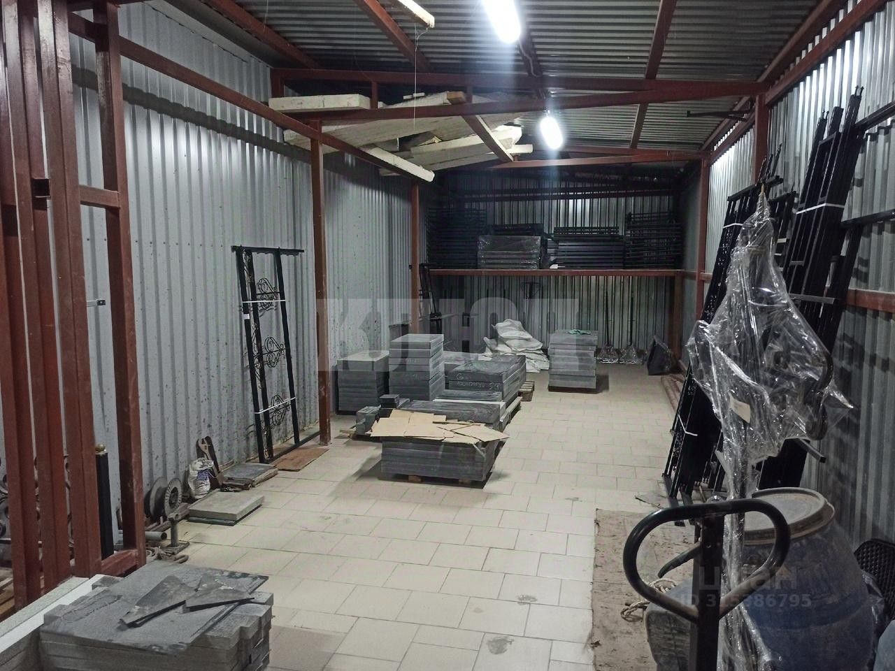 -На текущий момент здание используется для производства и продажи памятников. -Материал стен сендвич-панели. -Благоустройство: торговая зона отапливается за счет теплого пола от газового котла. В здание заведена холодная вода, Электричество 380В , канализация септик. -Имеются несколько отдельный входов, а так же подъемные ворота для разгрузки. -По периметру здания установлена система видеонаблюдения. -Помимо торгово-производственных помещений есть бытовые и санузел.