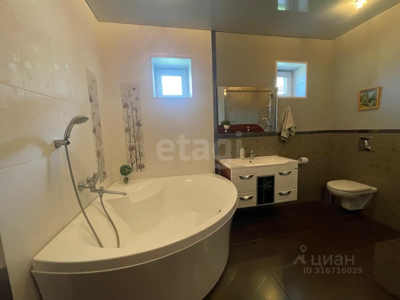 Во всем доме сделан качественный ремонт, навесные или натяжные потолки, стеклопакеты, плитка на полу.