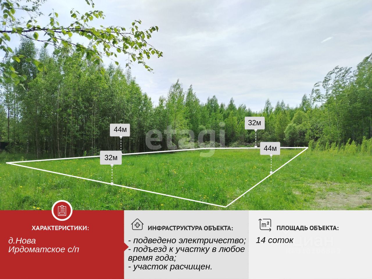 Земельный участок площадью 14 соток в деревне Нова Ирдоматского сельского поселения — готовое решение для тех, кто ищет место под строительство загородного дома или дачи. Участок полностью расчищен, имеет ровную поверхность и отсыпанный въезд, что обеспечивает удобство подъезда и начало строительства без дополнительных подготовительных работ. Подведенное электричество мощностью 15 кВт позволяет сразу приступить к подключению техники и освещения, а разрешенное использование под ЛПХ открывает возможности для выращивания сельскохозяйственных культур или разведения животных.
