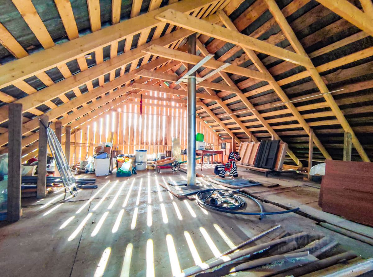 Планировка включает первый этаж с кухней, тремя жилыми комнатами и помещением, подготовленным под санузел. Мансардный этаж позволяет организовать дополнительные спальни или зону отдыха. Пока туалет расположен на улице (выгребная яма), но есть возможность обустройства удобств внутри дома. Участок 9 соток ухожен: здесь уже растут ели, создающие приятный ландшафт, а также есть баня и сарай, который можно использовать для хранения вещей или содержания куриц.