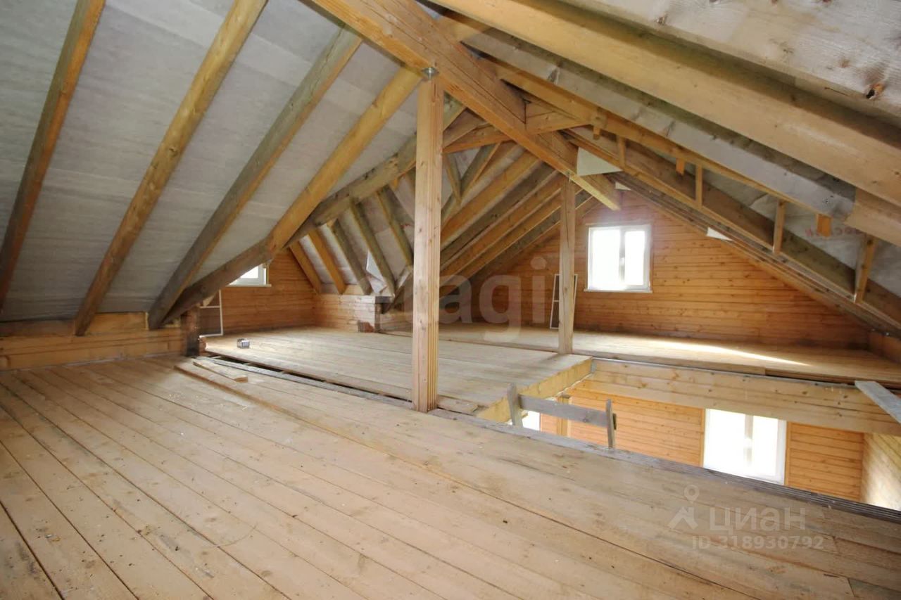 Дом из профилированного бруса 150х150мм размерами 9*8,5м. Выполнена качественная защитная наружная обработка. Фундамент ленточный с внутренней стяжкой на песчаной отсыпке. Предусмотрены технологические отверстия для коммуникаций. Свободная внутренняя планировка позволяет реализовать самые смелые архитектурно-дизайнерские решения по организации и обустройству пространства дома. Окна ПВХ, металлическая входная дверь. Имеется атмосферное чердачное помещение, готовое для обустройства мансардного этажа, оттуда открывается вид на живописные окрестности.