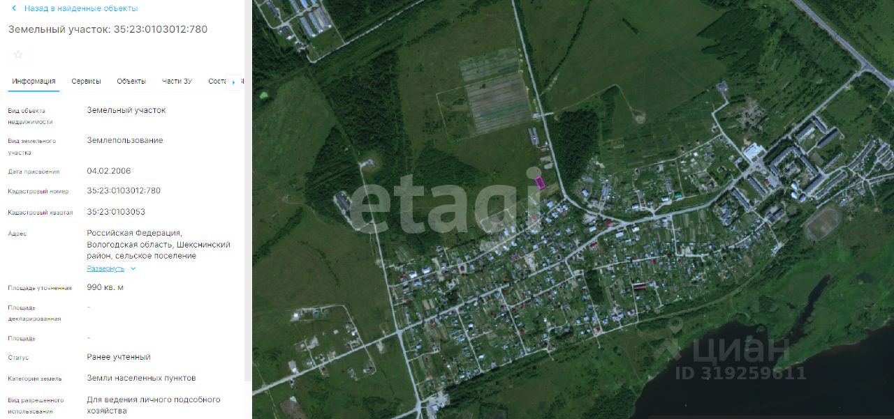 Продам земельный участок пл. 9,9 соток по адресу: Вологодская область, Шекснинский район, д. Нифантово.
