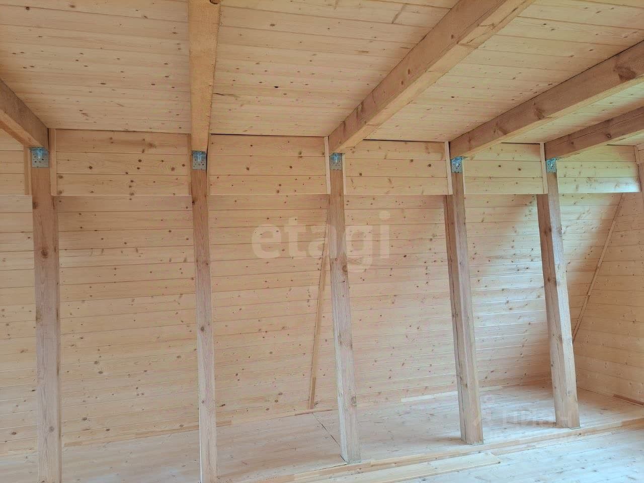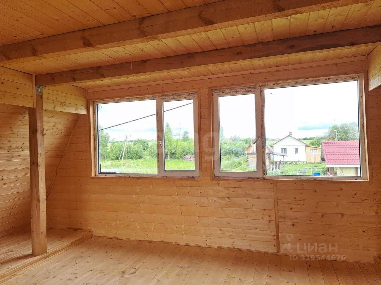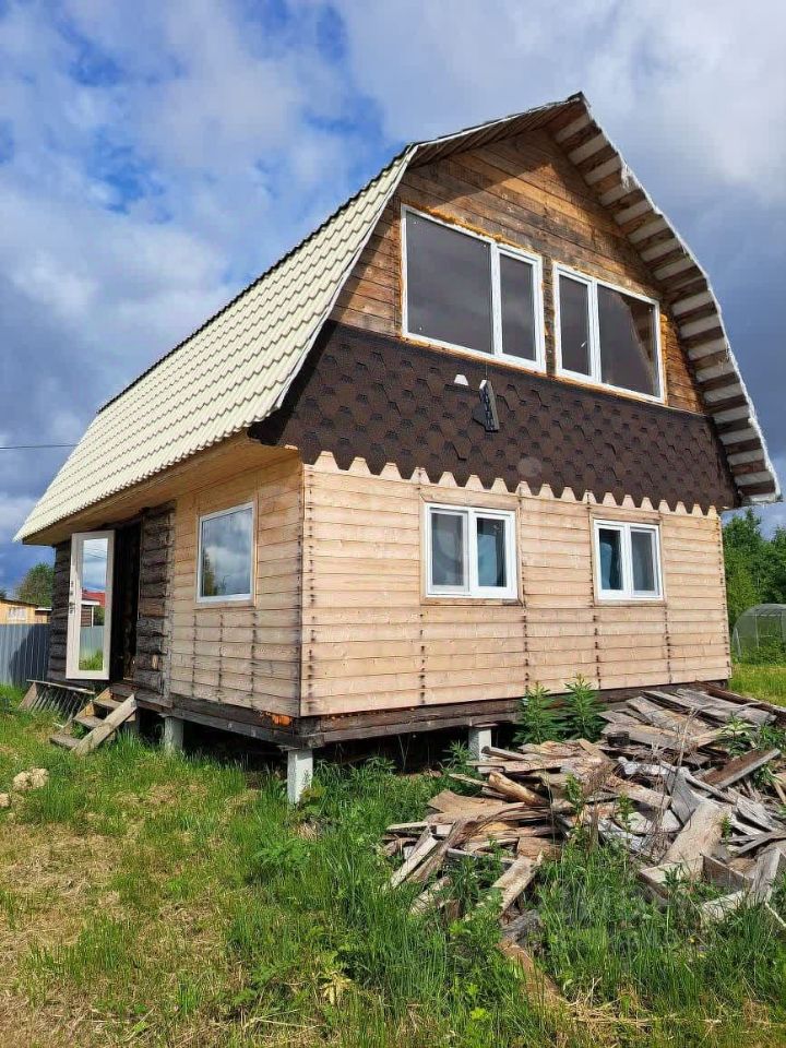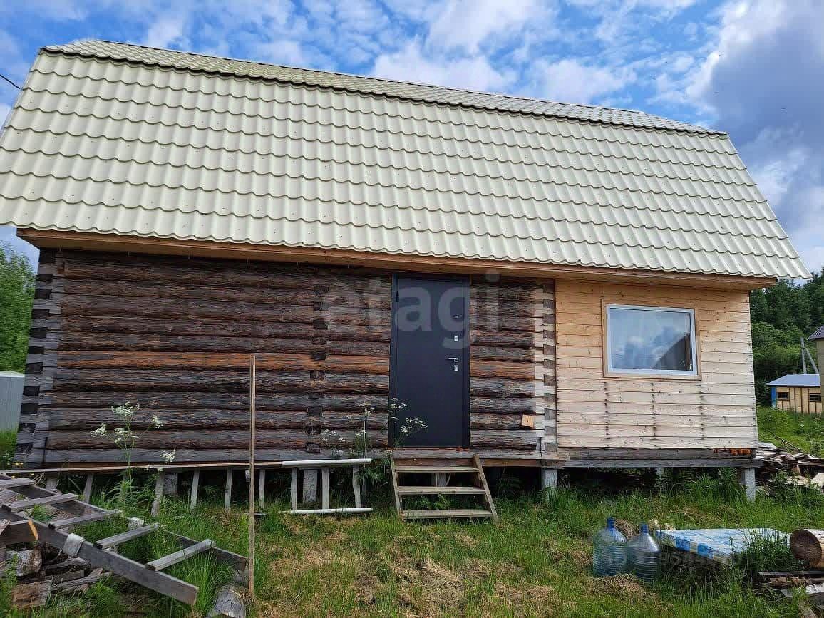 Территория участка благоустроена: здесь высажены ели, сосны и клен, создающие естественную зеленую зону и защиту от ветра. Основной объект — двухэтажный дом из цельного цилиндрованного бревна, установленного на 20 сваях, что гарантирует устойчивость конструкции и долговечность.