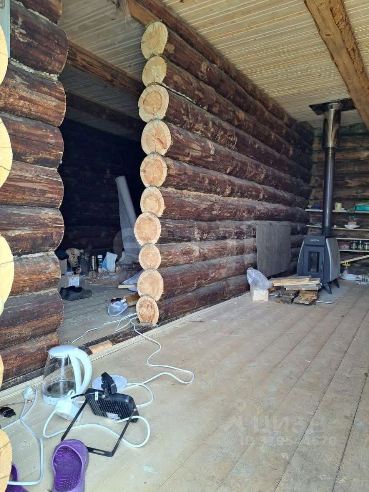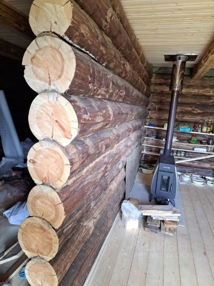 Территория участка благоустроена: здесь высажены ели, сосны и клен, создающие естественную зеленую зону и защиту от ветра. Основной объект — двухэтажный дом из цельного цилиндрованного бревна, установленного на 20 сваях, что гарантирует устойчивость конструкции и долговечность. Электричество подведено к дому, но разводку можно адаптировать под индивидуальные потребности нового собственника. Отопление печное, что обеспечивает автономность и независимость от центральных сетей.