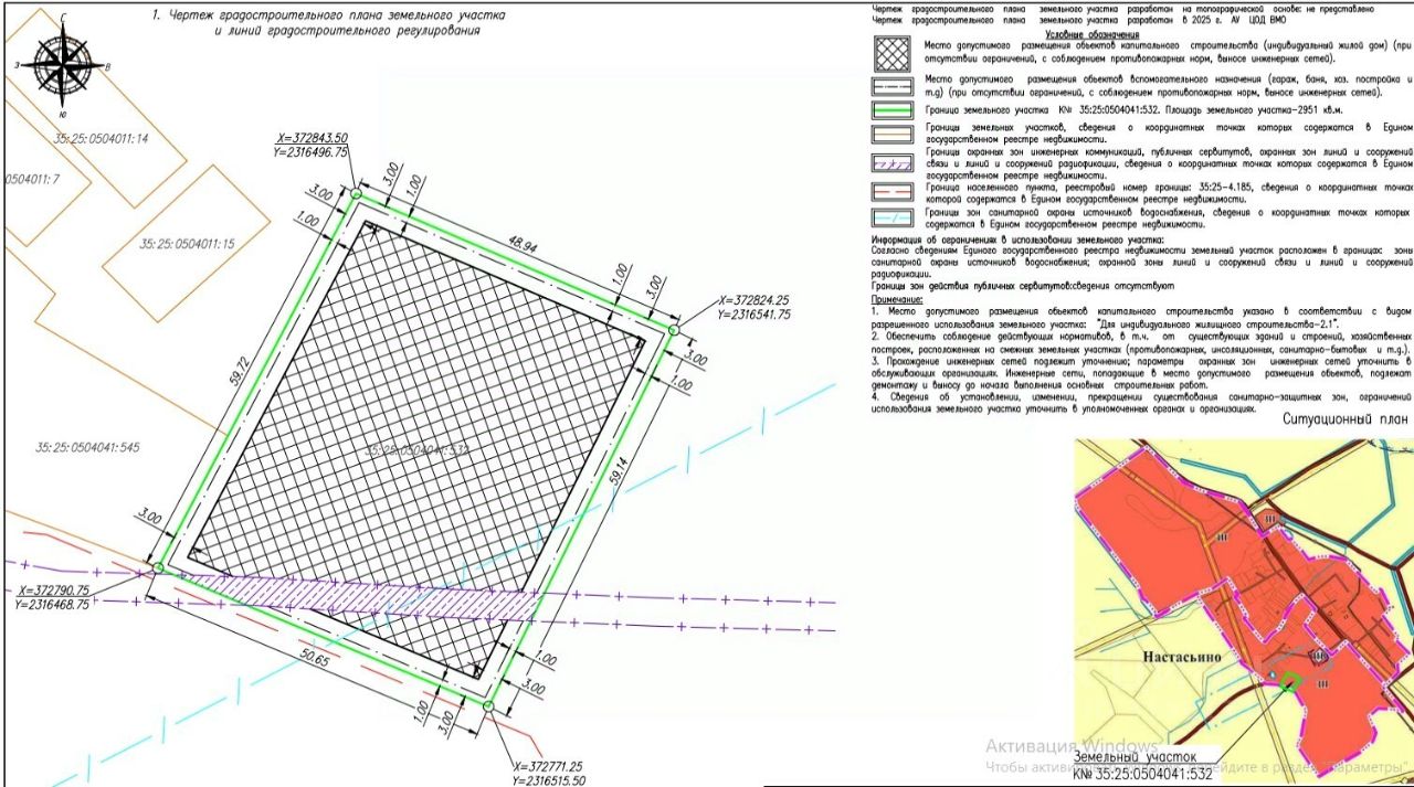 Земельный участок 29 соток(2951м) ИЖС - Земли населенных пунктов в Настасьино — деревня в Вологодском районе Вологодской области. Входит в состав Кубенского сельского поселения. Участок ровный подходит под строительство дома. Есть градостроительный план. Деревня находится в 22 км от Вологды в направление по трассе А 119. Дополнительная информация по телефону.