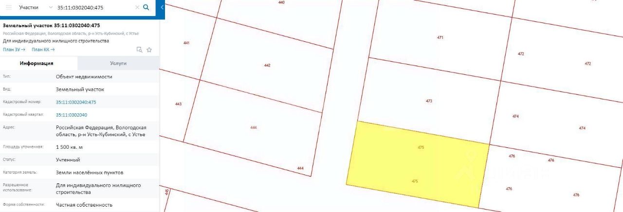 - Кадастровый номер 35:11:0302040:475