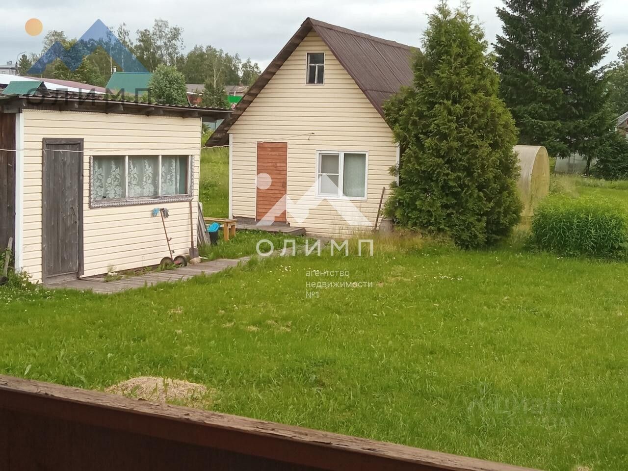 На участке также имеется баня, хозяйственная постройка, колодец, теплица, яблони, кустарники.