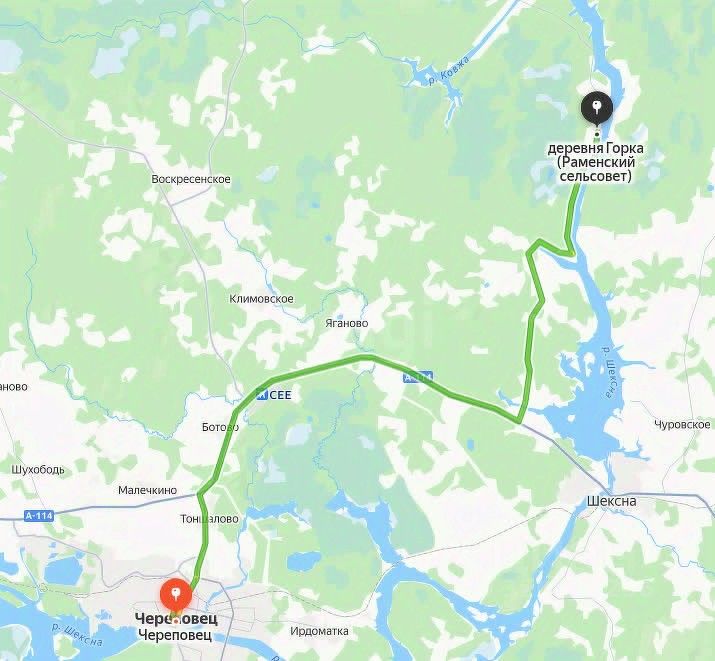 На своем транспорте Вы доедете за 50 минут от Череповца и за 1час 40 минут от Вологды, от поселка Шексна - всего 29 км. В пешей доступности лес.