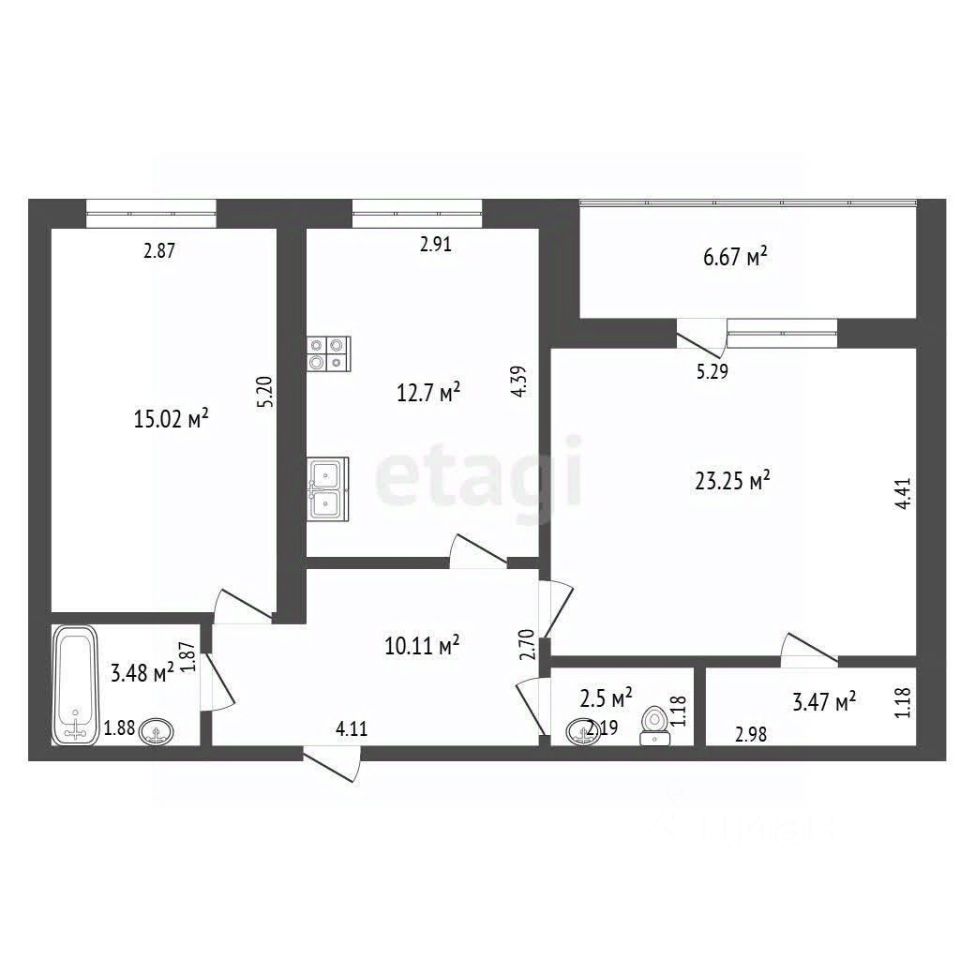 Очень уютная и светлая квартира с идеальными характеристиками: высокие потолки, общая площадь - 70,4 кв.м, 2 комнаты квадратной формы (15 и 23,25 кв.м), большой коридор и просторная кухня (12.7 кв.м) - мечта любой хозяйки. Вам обязательно понравится продуманная и удобная планировка квартиры. Также есть отдельная гардеробная, которая сэкономит пространство в квартире и позволит удобно разместить вещи. Санузел раздельный.