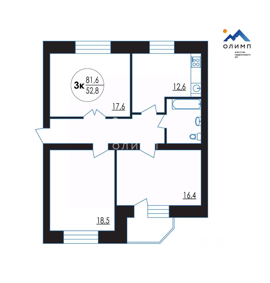 Квартира находится на втором этаже, все три комнаты правильной геометрической формы, просторные и изолированные. Большие окна обеспечивают отличное естественное освещение. Просторная кухня площадью 12,6 м². Коридор 11.2 м2
