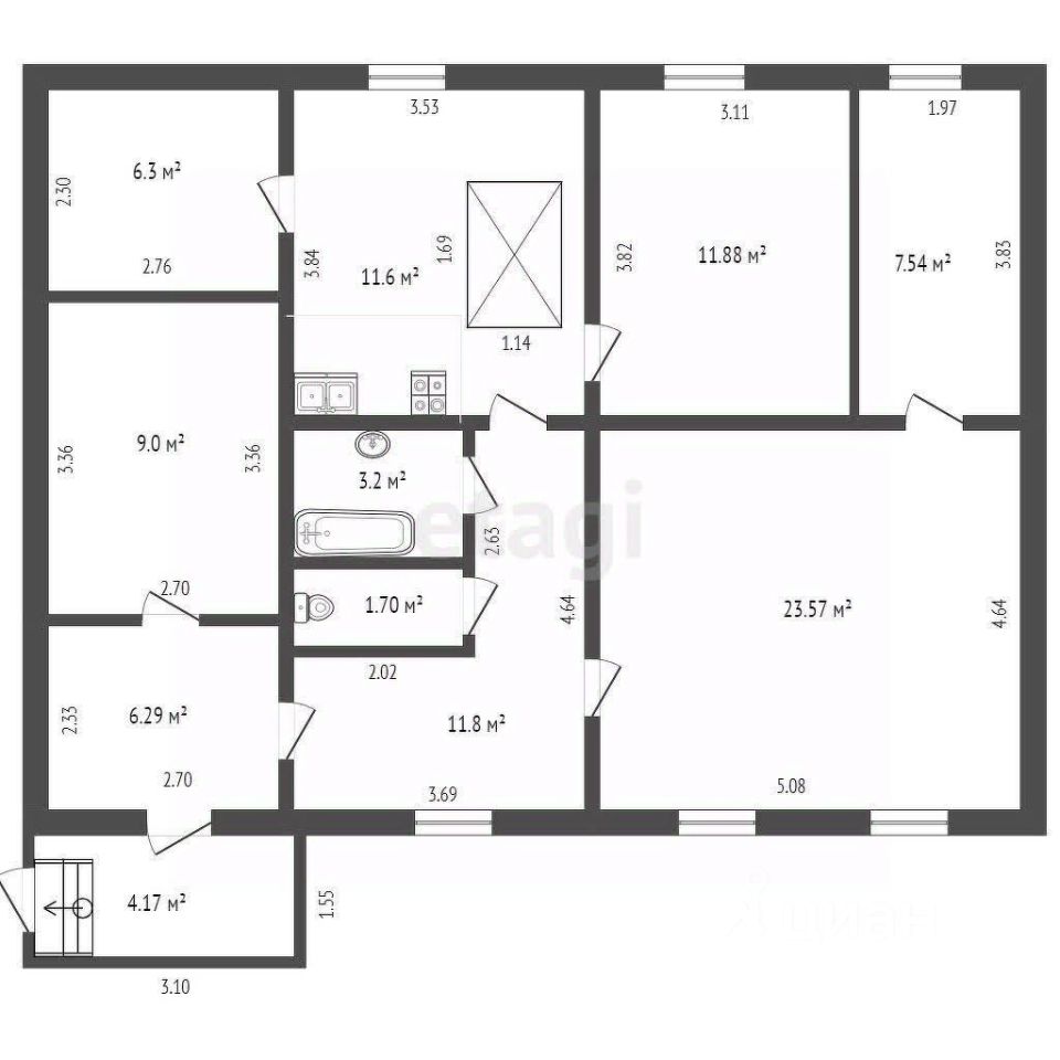 В доме 3 комнаты, кухня, совмещенный санузел.