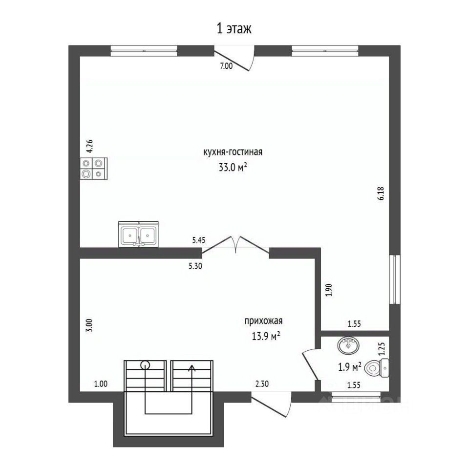 Внутри вас ждут два уютных жилых помещения площадью 12,8 и 16,4 кв. м, а просторная кухня-гостиная площадью 33 кв. м станет идеальным местом для семейных встреч и дружеских посиделок.
