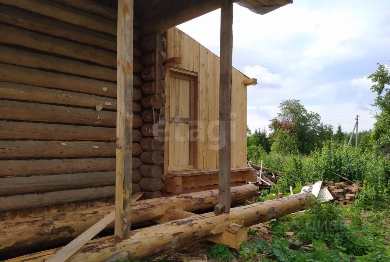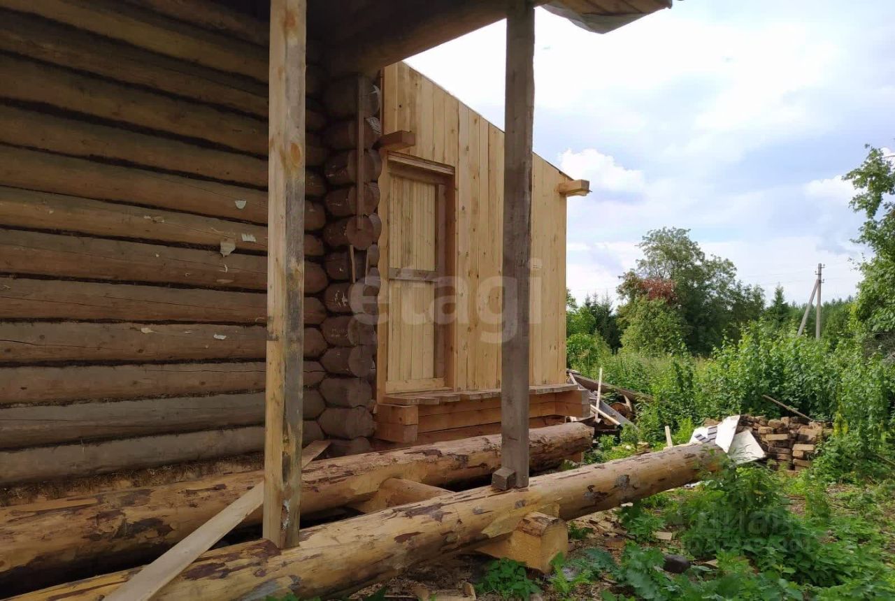 Дом выполнен из бревна и имеет деревянную облицовку.