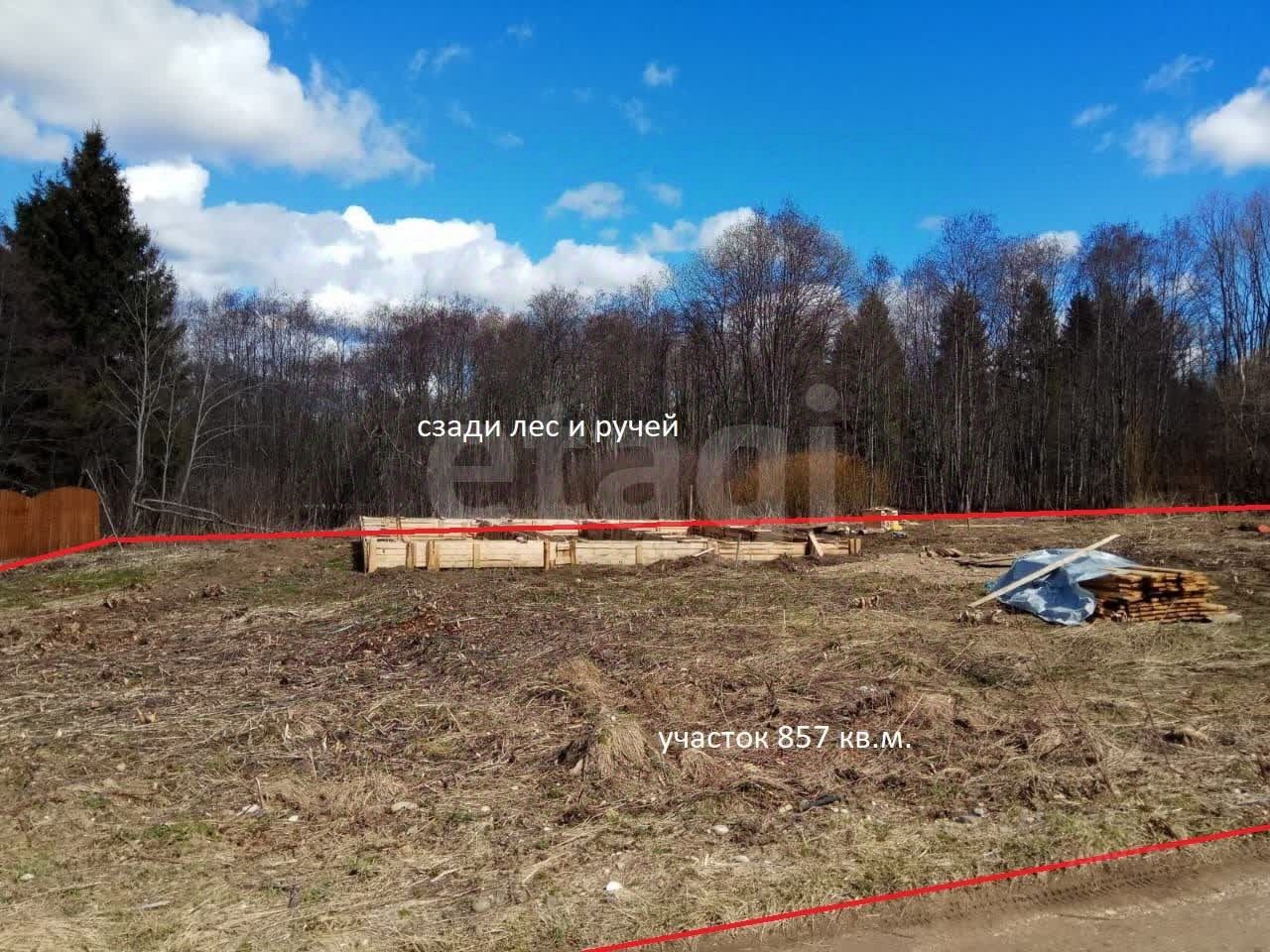 На углу участка установлен столб, подведено электричество. Сам участок прямоугольной формы, ровный, отмежеванный, имеется градостроительный план (на большей части участка можно строить жилой дом). Планировали строить дом, но дальше строительства опалубки для фундамента дело не пошло, в итоге купили другой участок, а этот оказался не востребован. Сейчас он подзарос травой и кустарником, подкрепляю фото не заросшего участка.