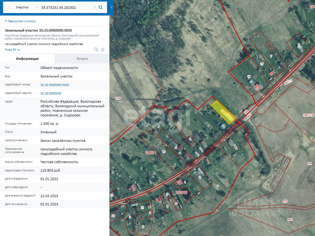 Участок находится в Новленском сельском поселение, д. Сидорово в 60 км от центра города и часа езды на автомобиле.