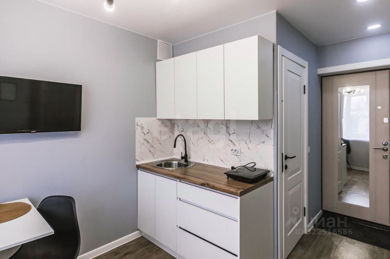 В продаже квартира-студия. Сделана из комнаты в семейном общежитии. В квартире сделан качественный свежий ремонт. Полностью укомплектована мебелью (кухонный гарнитур, шкафы для одежды, диван, стол, стулья) и техникой (холодильник, стиральная машина, варочная панель, телевизор). Всё остаётся новым собственникам. Туалет и душ свой. Находится в комнате. Соседи тихие и спокойные. В секции живёт семейная пара и мужчина. Не пьющие. Секция чистая, соседи поддерживают порядок. Места общего пользования в хорошем состоянии. Квартира отлично подойдёт как для студента, так и для пары. Или для сдачи в аренду. Есть всё необходимое для комфортного проживания. Квартира без долгов и обременений. Один взрослый собственник. Быстрый выход на сделку.
