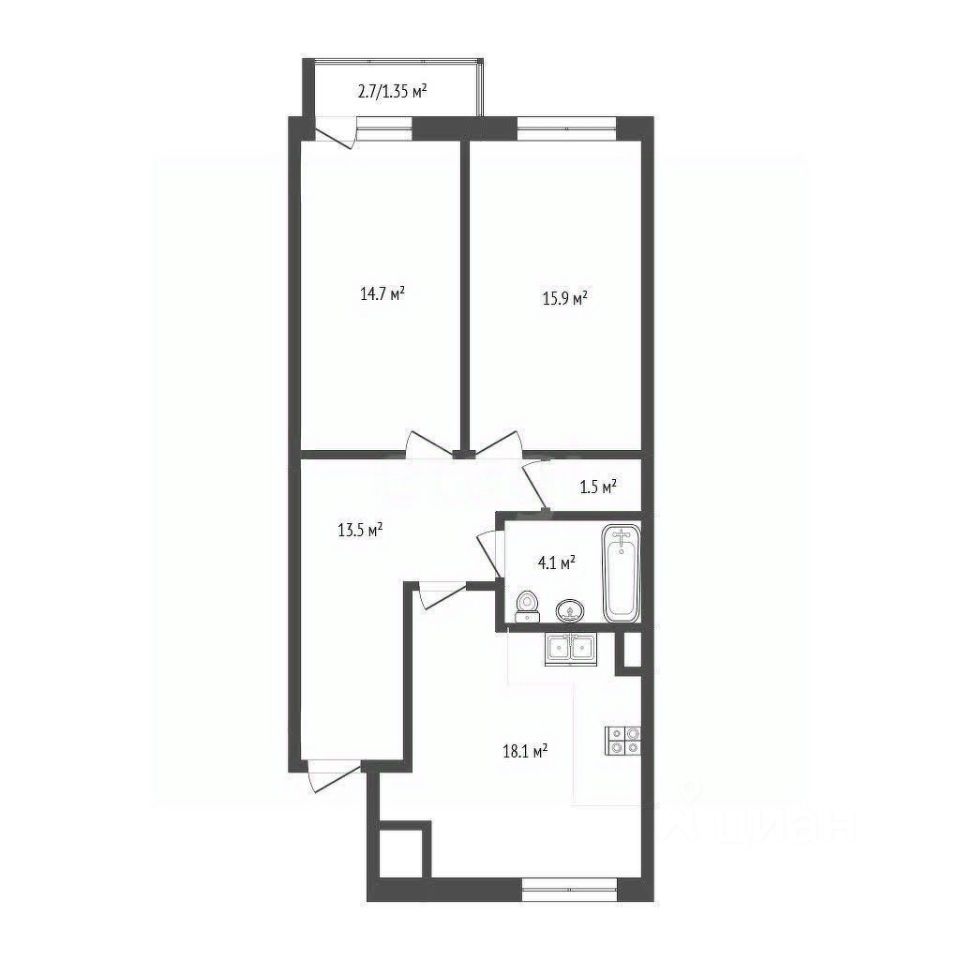Отлично подойдет для большой семьи: большая кухня-гостиная (18м2), отдельная спальня-детская и спальня с балконом, который можно переоборудовать под кабинет. Так же квартира хороша просторной прихожей и отдельной гардеробной!