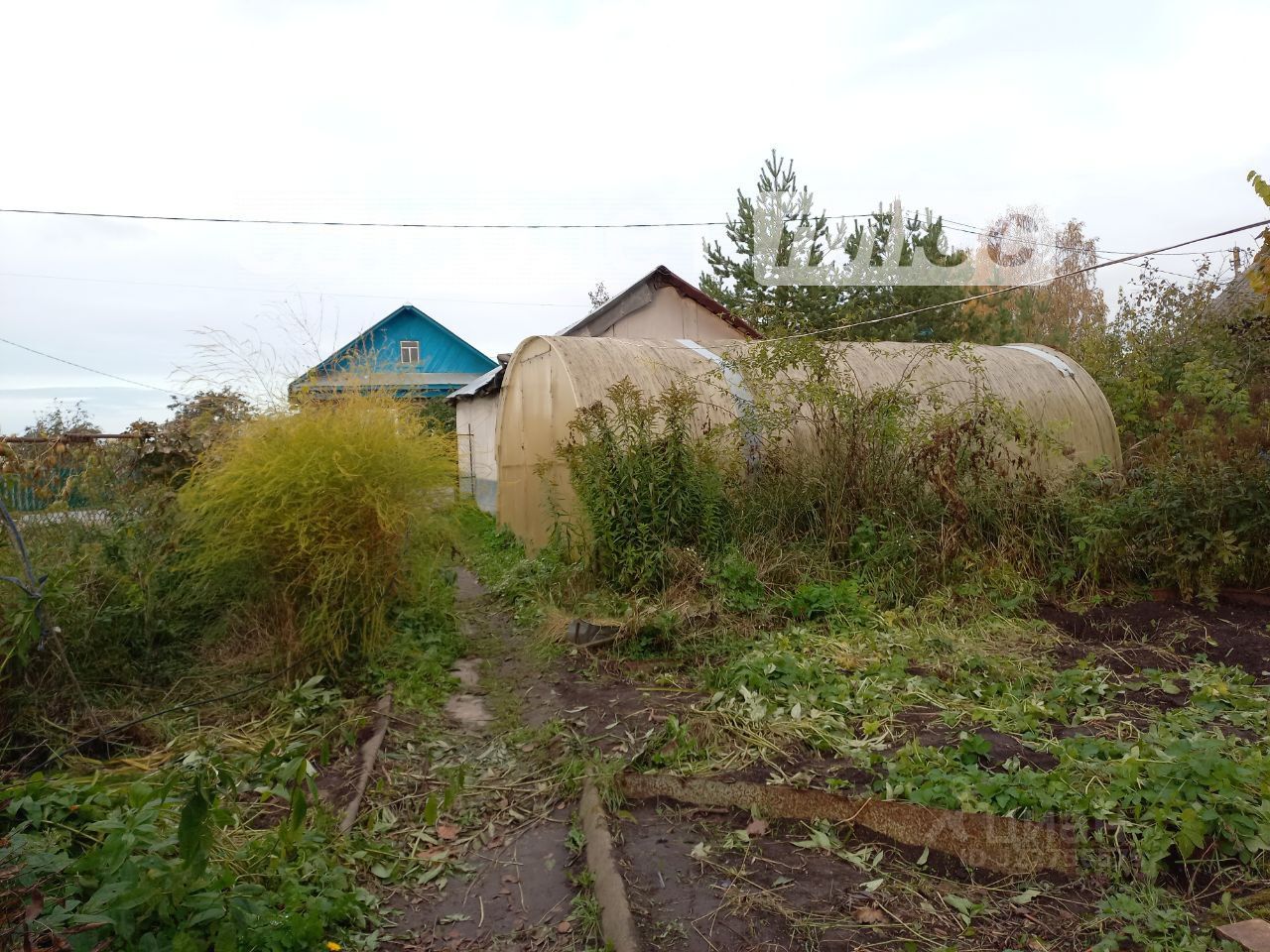 На участке расположены гараж, теплица, грядки.