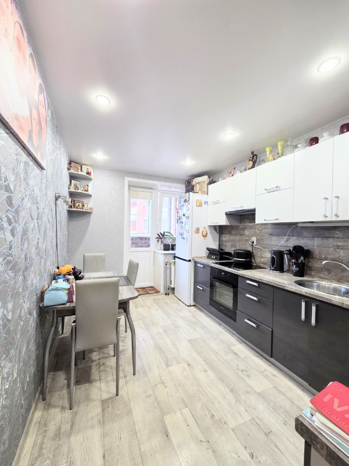 Кухня 9.5 метров с выходом на балкон, оставляем кухонный гарнитур со встроенной бытовой техникой.