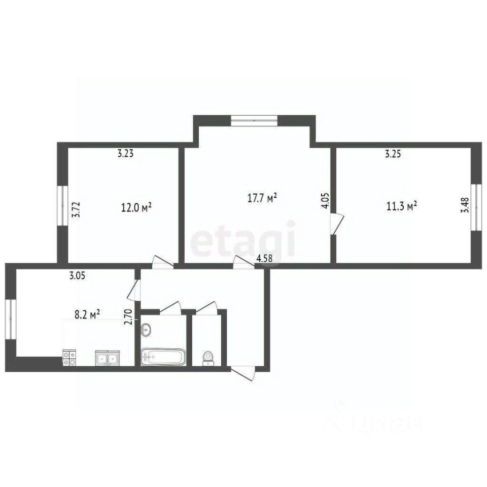 Трехкомнатная квартира площадью 62 кв. м расположена в кирпичном доме с чистым подъездом и спокойными соседями. Высокие потолки и большие окна обеспечивают обилие естественного света и ощущение простора. Планировка функциональная, с изолированными комнатами, что создает условия для уединения и комфортного проживания семьи. Современные пластиковые окна установлены в кухне и одной из комнат. Состояние квартиры хорошее, проведен частичный ремонт инженерных систем: заменены трубы на пластиковые, установлены счетчики воды и газа, работает газовая колонка. В текущем году запланирована замена общедомовых стояков, что исключает будущие расходы на капремонт. Низкие коммунальные платежи являются существенным преимуществом.