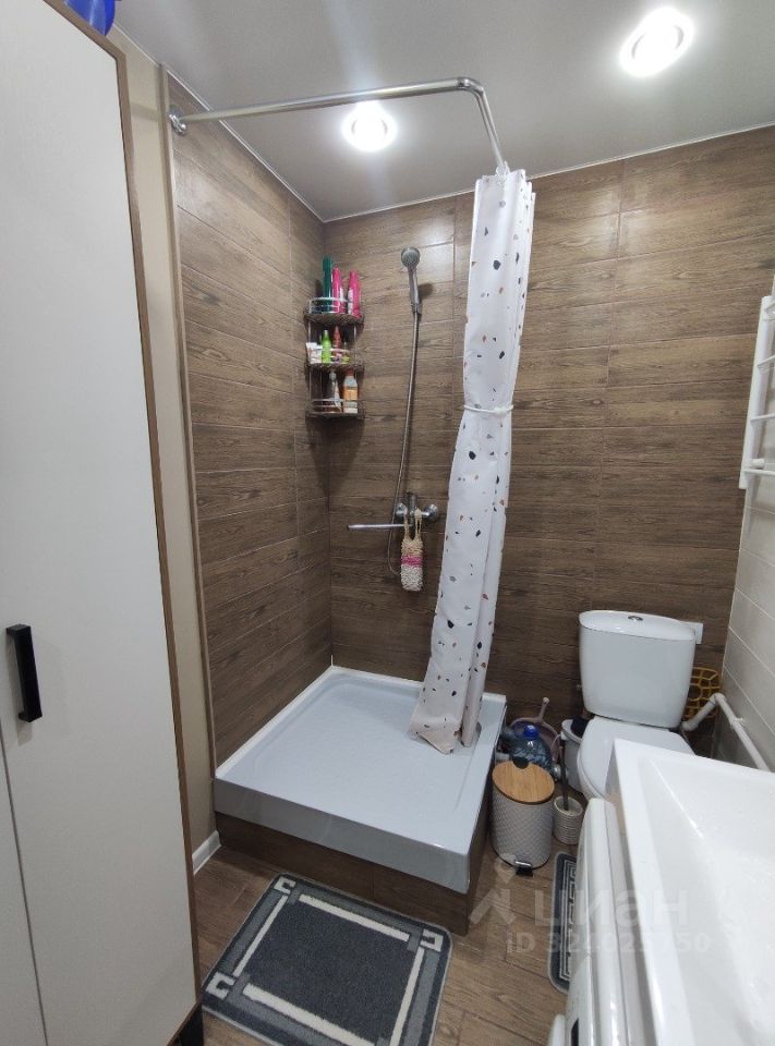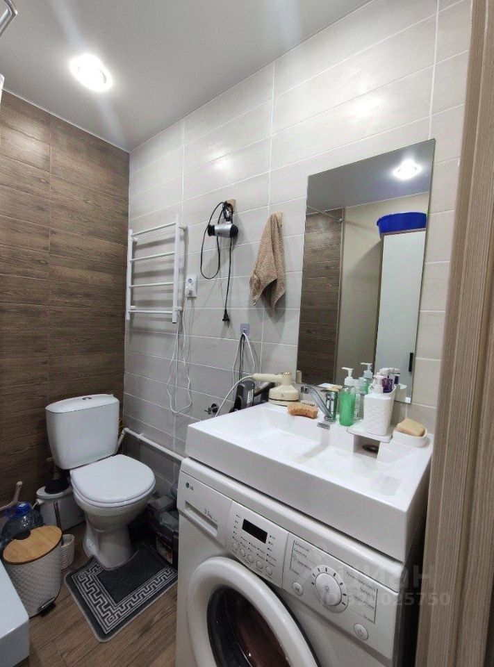 Санузел, расположенный непосредственно в студии, оснащён душевой кабиной, стиральной машиной и раковиной. Новая мебель добавляет изысканности и комфорта.