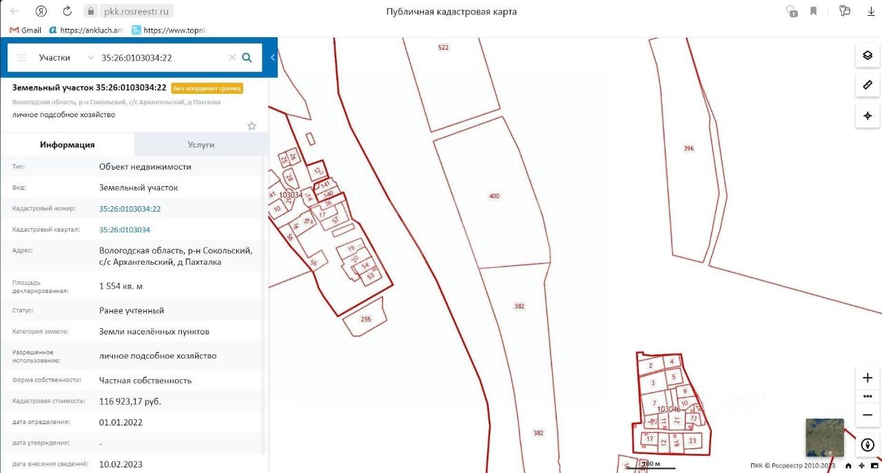 - Кадастровый номер 35:26:0103034:22.