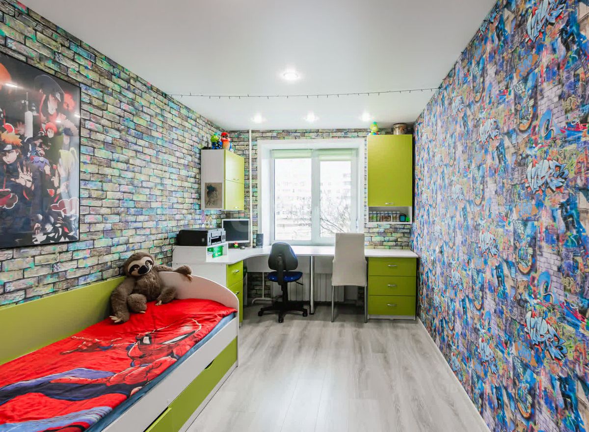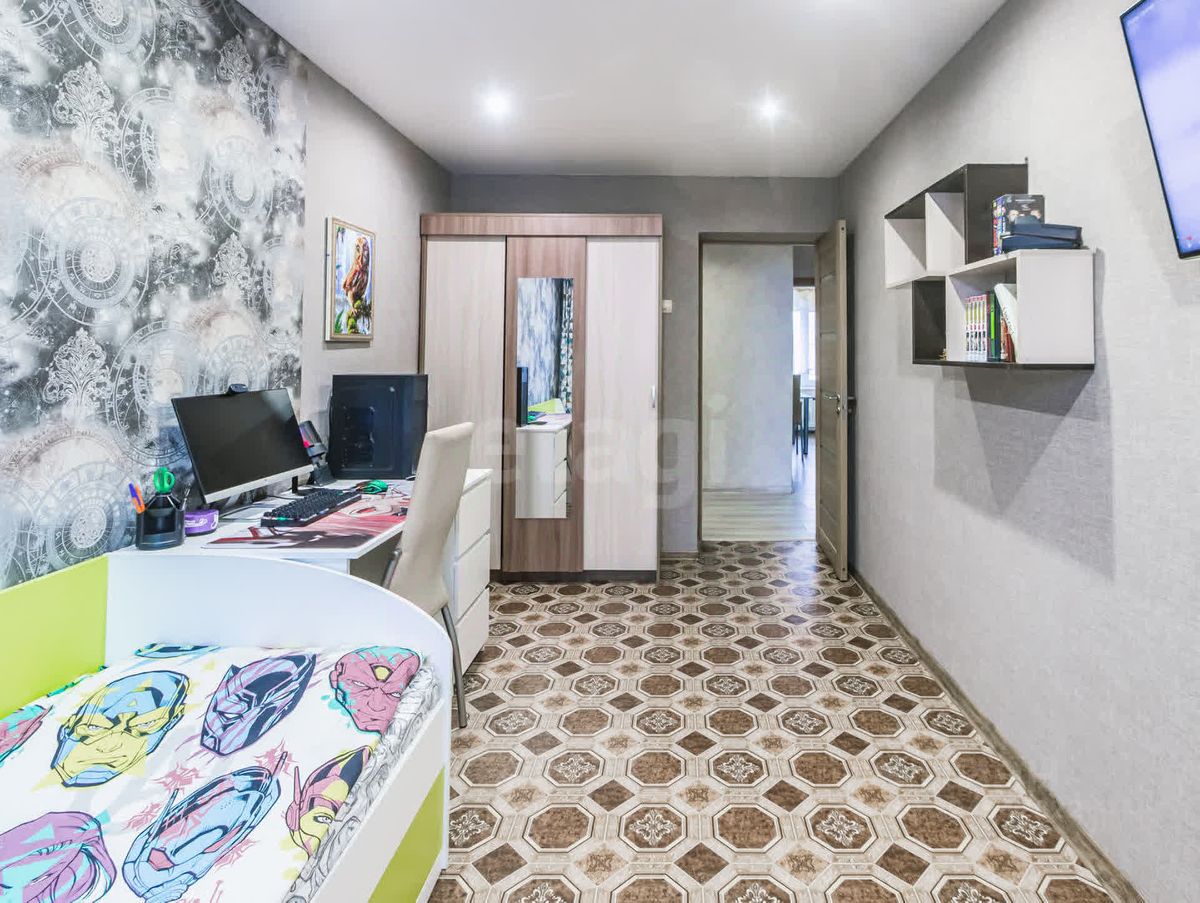 Гостиная — это сердце квартиры, где вы сможете разместить всю необходимую мебель для комфортного отдыха и встреч с друзьями. Две уютные спальни идеально подойдут для вашей семьи: одна из них — это детская с компьютерным столом и двумя кроватями, а окно выходит во двор, что обеспечивает тишину и спокойствие.