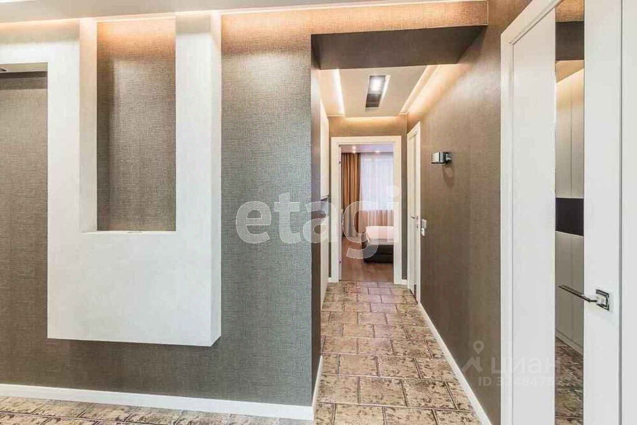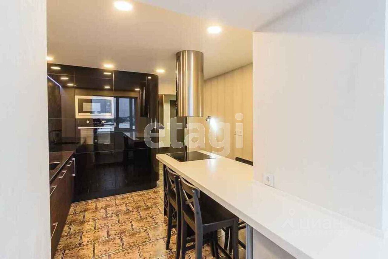 Просторная квартира на четвертом этаже предлагает выгодную планировку на две стороны, обеспечивающую отличную инсоляцию и эффективное проветривание. Объект находится в отличном состоянии благодаря качественному ремонту с применением долговечных материалов. Ключевые преимущества включают высокий уровень шумо- и теплоизоляции, надежную металлическую входную дверь, пластиковые окна, а также биметаллические радиаторы с индивидуальными регуляторами тепла. Центральным помещением является большая гостиная площадью 22 кв. м., которая органично перетекает на внушительную по размерам лоджию, создавая идеальное пространство для отдыха и приема гостей. Функциональная кухня оснащена современным гарнитуром со встроенной техникой, включая посудомоечную машину и духовой шкаф.