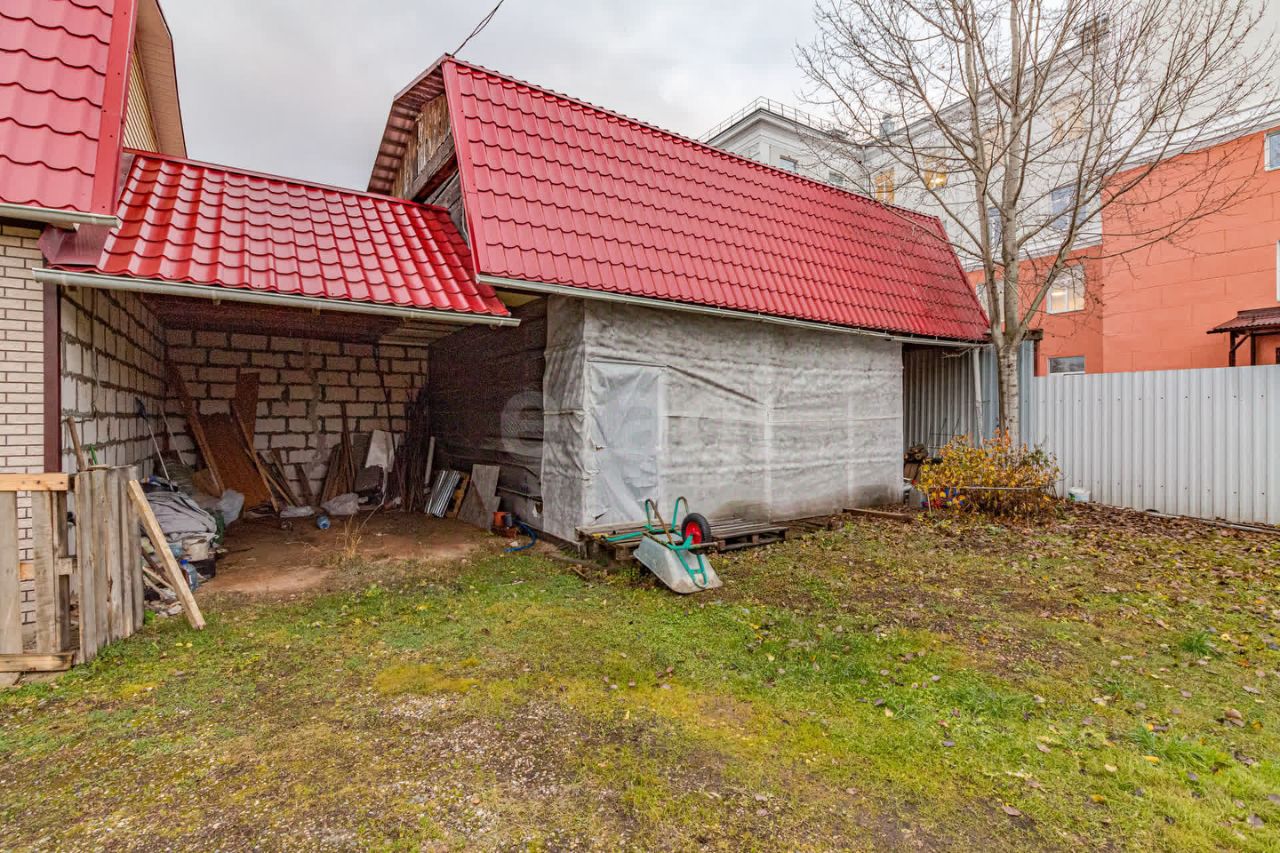 Территория дома огорожена забором, парковка на территории доступна. В собственности имеется 1/2 от участка в 10,5 соток в черте города. В саду выращены туи, вишня, смородина, крыжовник и малина. Из сада можно попасть в небольшой домик, который можно использовать как дополнительное помещение, например, гараж или банный комплекс.