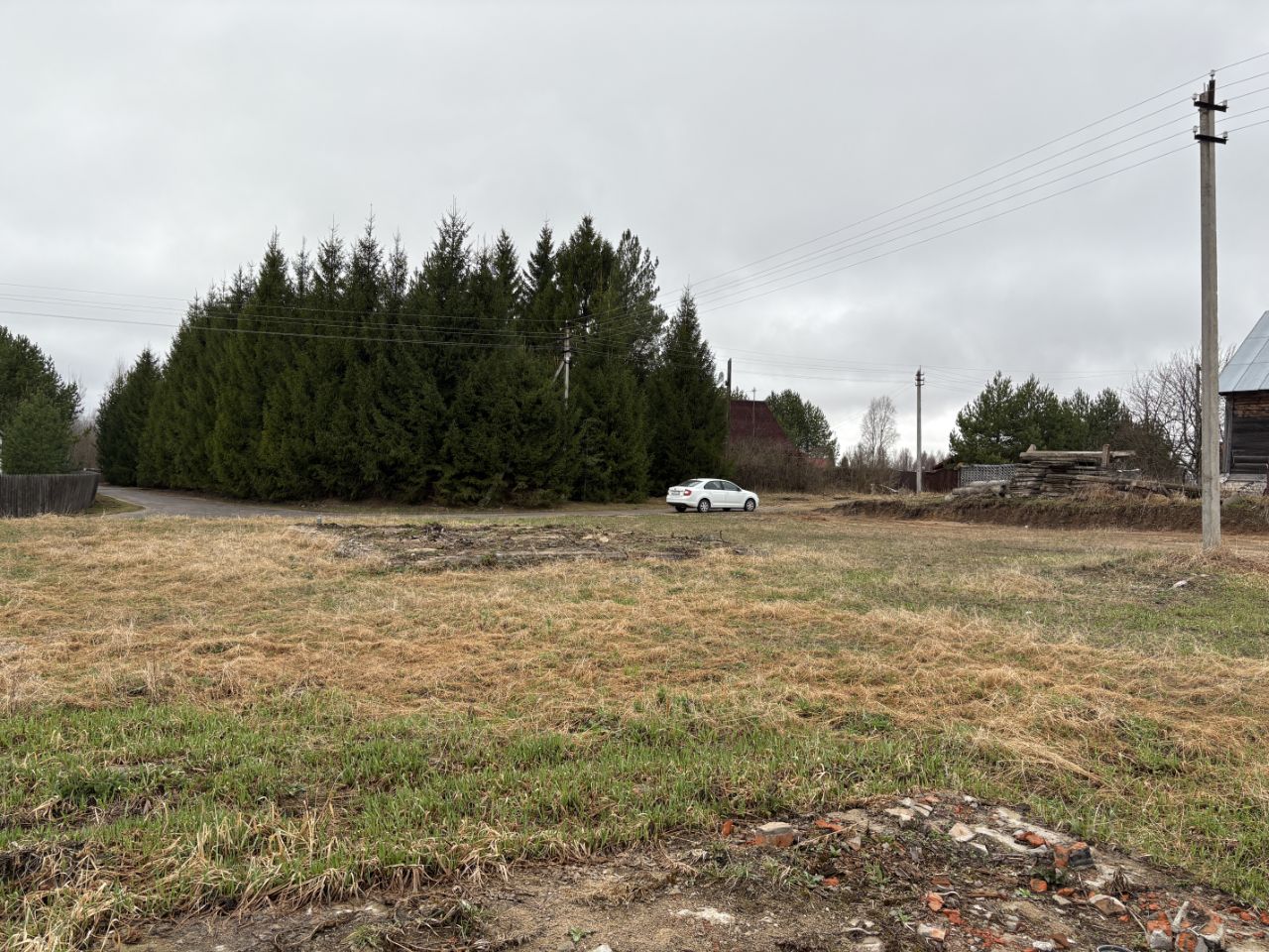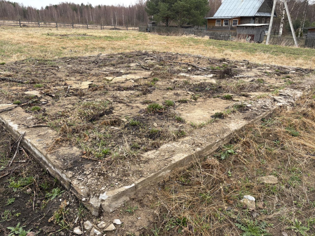 Участок прямоугольной формы, начиналось строительство дома но приостановлено( ленточный фундамент стоит более 8 лет)