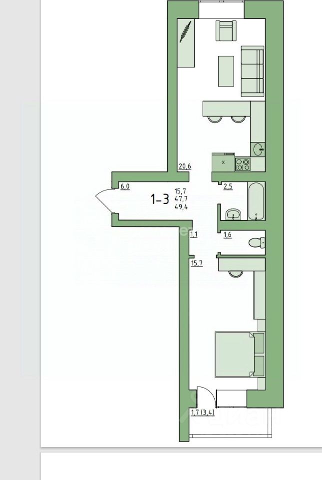 Oтличный формaт ''евродвушка'' с куxнeй-столовой 20.8 м2. кв. Дом для жизни-без квартир студий!