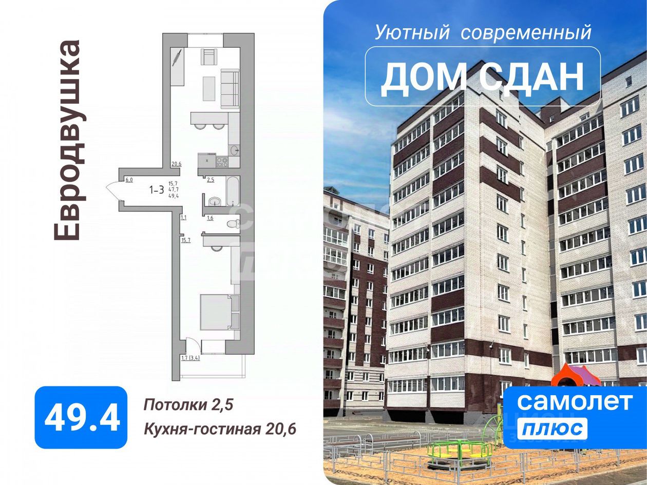 ''Самолет Плюс'' Вологда ЯВЛЯЕТСЯ ОФИЦИАЛЬНЫМ ОТДЕЛОМ ПРОДАЖ ЗАСТРОЙЩИКА И ПОЭТОМУ НЕ БЕРЁТ С ВАС КОМИССИЮ ЗА СДЕЛКУ! Построен ФОК ''Золотая шайба'' с ледовым полем размером 20х40 метров, залом для общей физической подготовки, скалодромом и двумя дорожками для керлинга. Вблизи расположен стадион ''Локомотив''. Выстроена современная дорожная магистраль — ул. Поэта Романова, с прямым выездом на ул. Маршала Конева. Рядом с жилыми домами расположены три детских сада, две школы, завершено строительство новой современной школы. В 2024 году на улице Поэта Романова открыла двери новая взрослая поликлиника 3, рассчитанная на 30 тысяч человек. ТЦ ''Мармелад'' в шаговой доступности! Продуктовый рынок ''На Новгородской'' рядом! ''Пятерочка'' в соседнем доме!