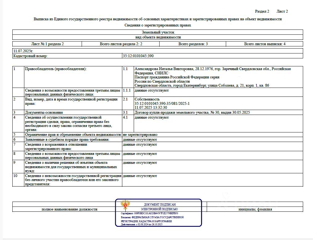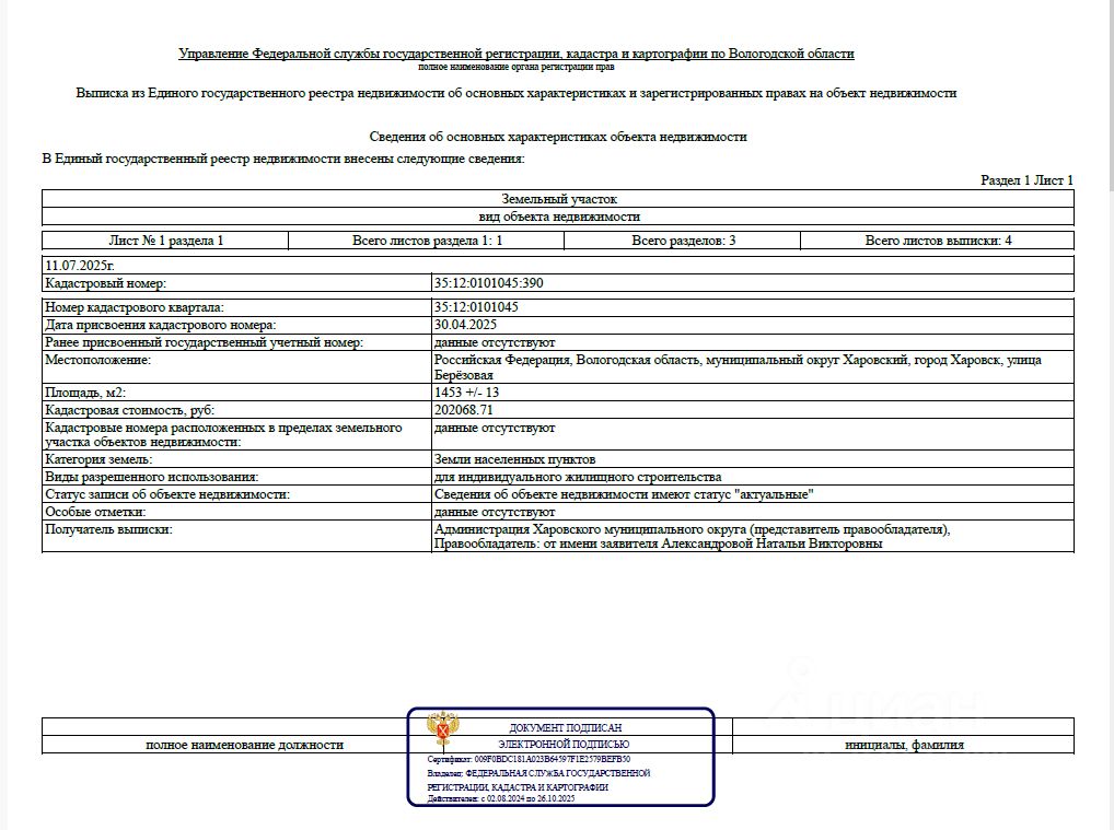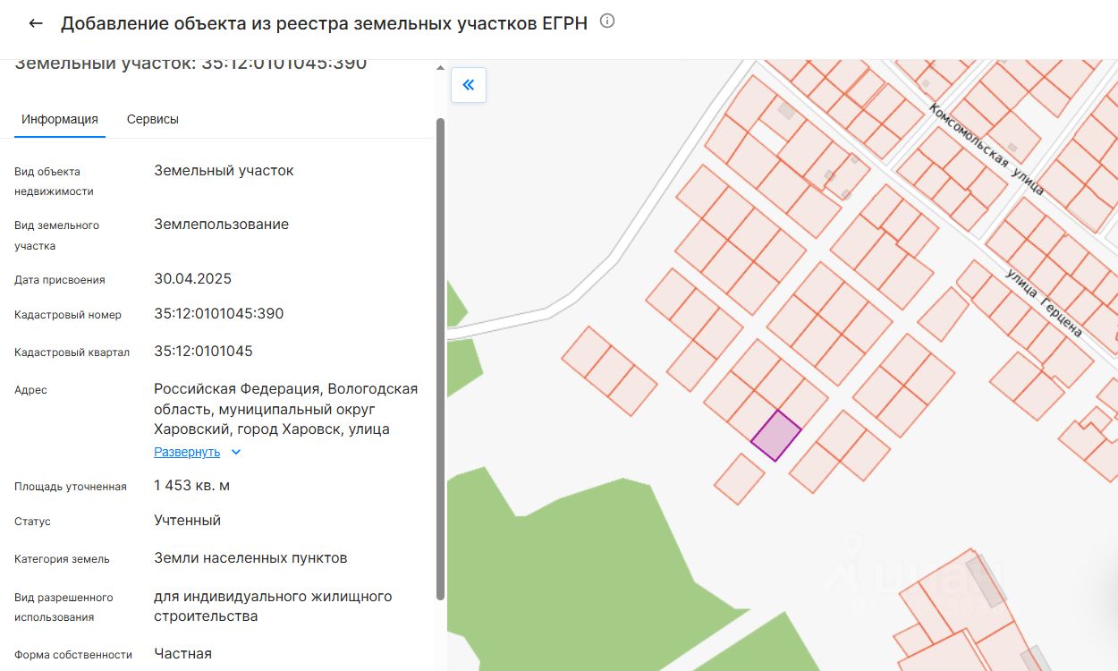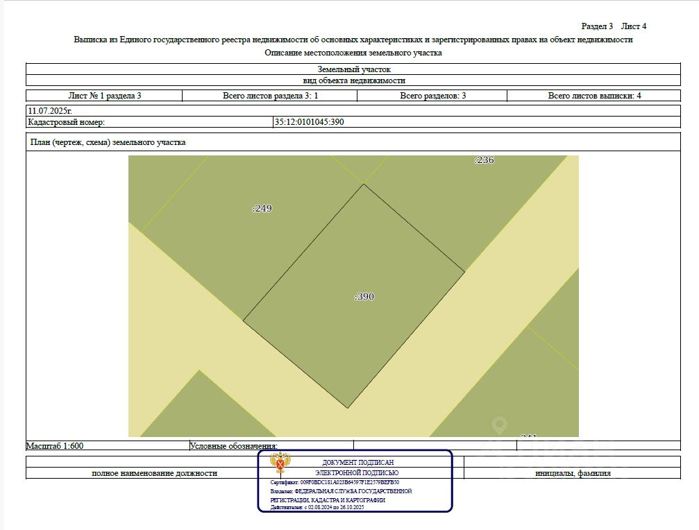 - Кадастровый номер участка: 35:12:0101045:390