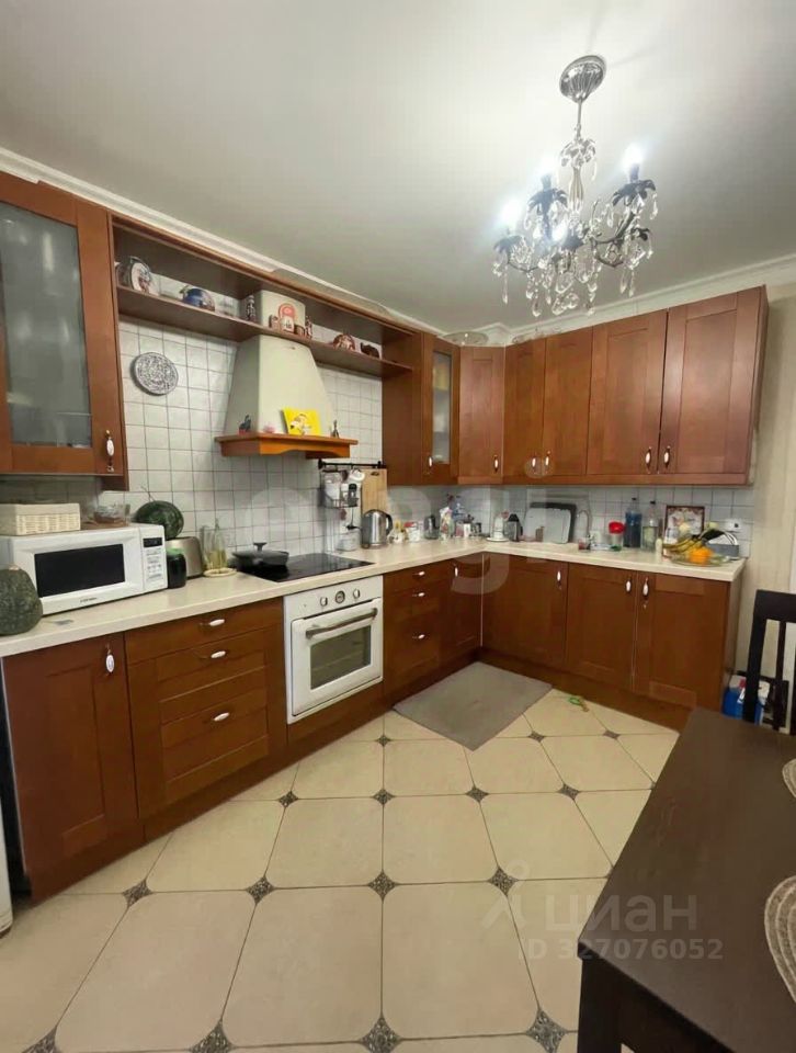 В квартире остаются: кухонный гарнитур с варочной поверхностью и вытяжкой, большой шкаф-купе в прихожей и шкаф-купе в спальне.